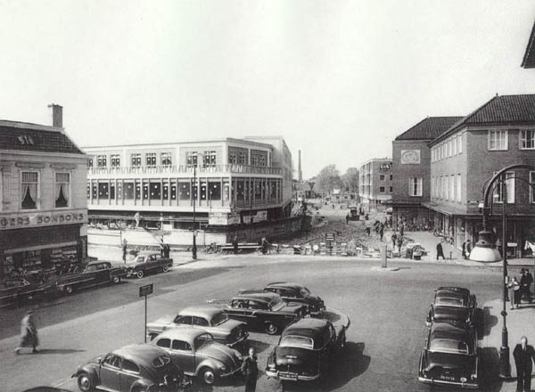Hieronder zie je respectievelijk het hoekpand Langestraat 31 in 1953, half gesloopt in 1954, en het gat (links op de 3e foto) zoals dat was geslagen in 1957